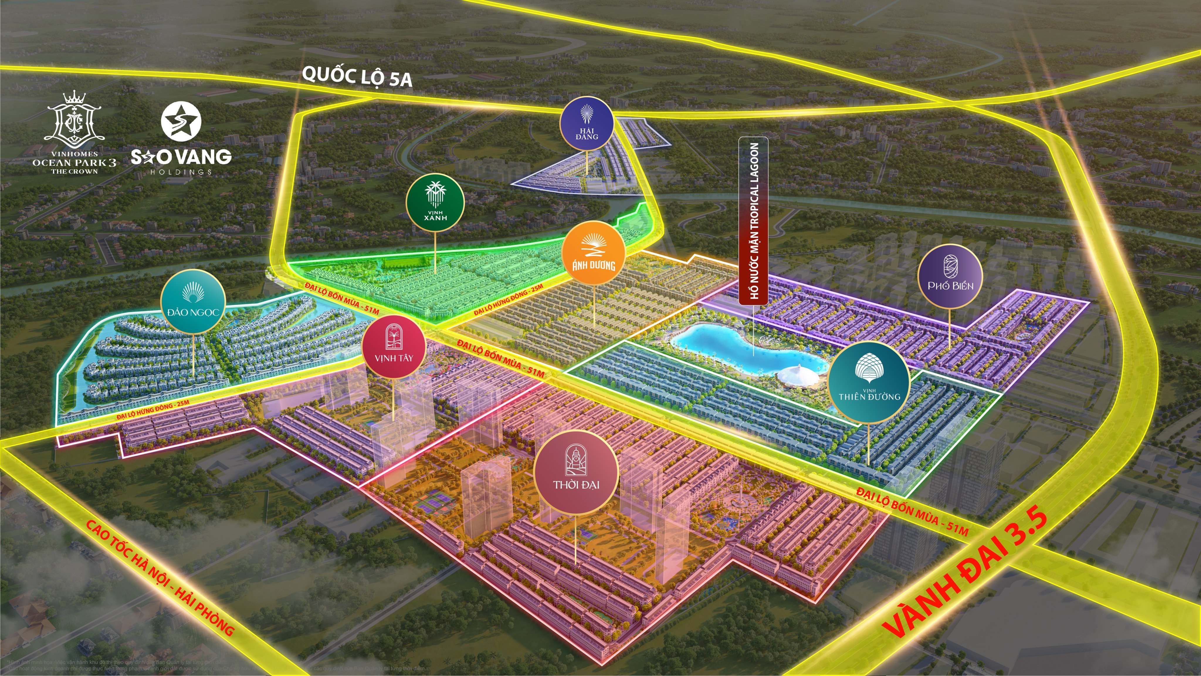 Vinhomes Ocean Park 3 - The Crown (Vinhomes Đại An) là hợp phần tiếp theo - Mảnh ghép thượng lưu đẳng cấp bậc nhất tại Trái tim Siêu quần thể này sẽ hoàn thiện toàn bộ Siêu quần thể đô thị biển 1200ha tại chân trời thành phố phía Đông. Miền đất lành hiếm hoi quy tụ bộ ba Tâm biển - Kề hồ - Kế sông, không chỉ khởi sinh tài lộc vượng khí dồi dào mà còn mang đến vi khí hậu trong lành. Nơi mỗi chủ nhân là “Tỷ phú của muôn vàn sắc xanh”, nuôi dưỡng thể chất và tinh thần giữa căng tràn sức sống, từ trời mây đến cây cỏ, từ biển lớn đến sông xanh, hồ mát.